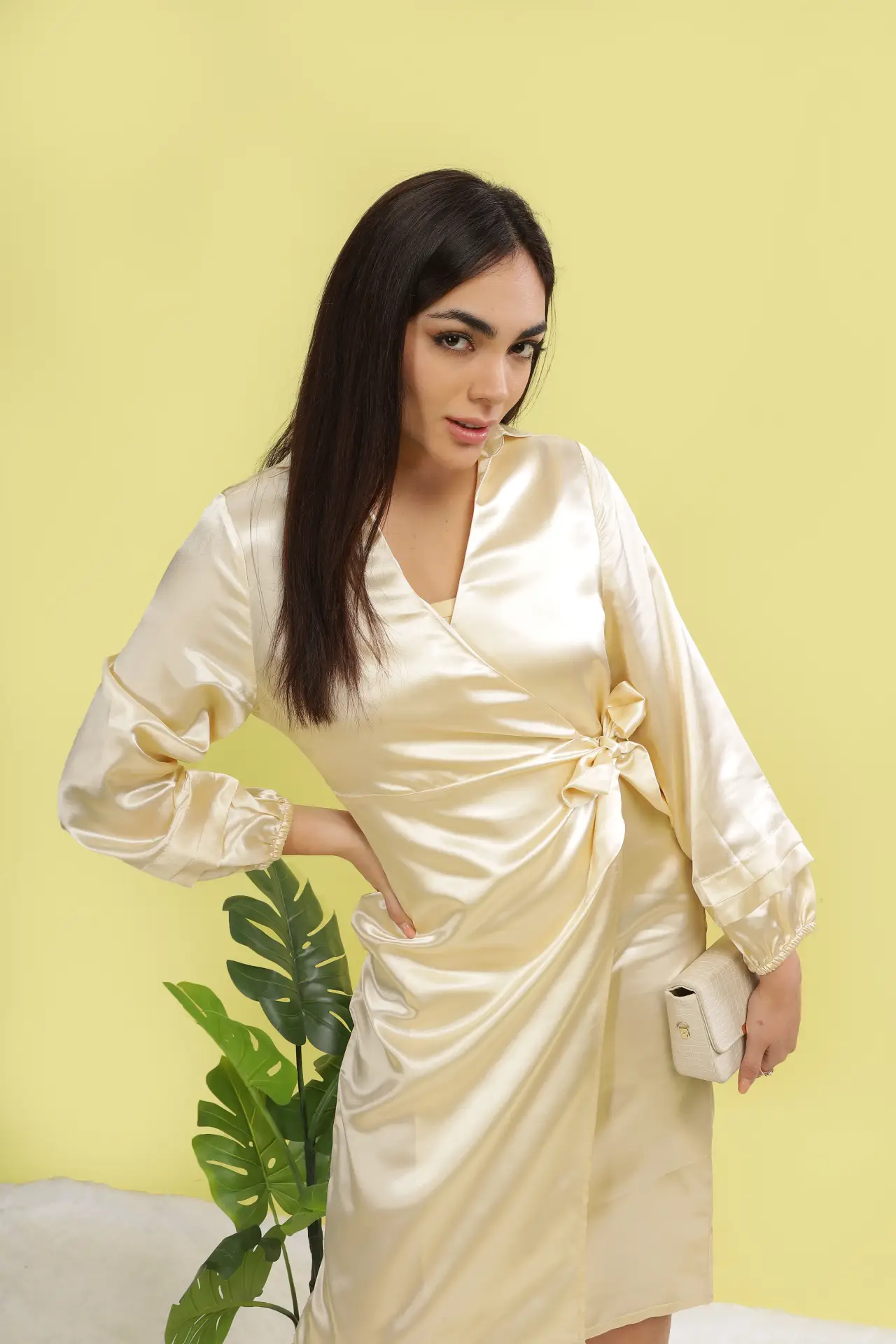 Unveiling the essence of elegance with this luxurious satin side knot midi dress. Made with imported Korean satin for both comfort and style. The epitome of sophistication, its smooth silhouette and intricate side knot detail redefine timeless glamour. A true embodiment of modern luxury and style.